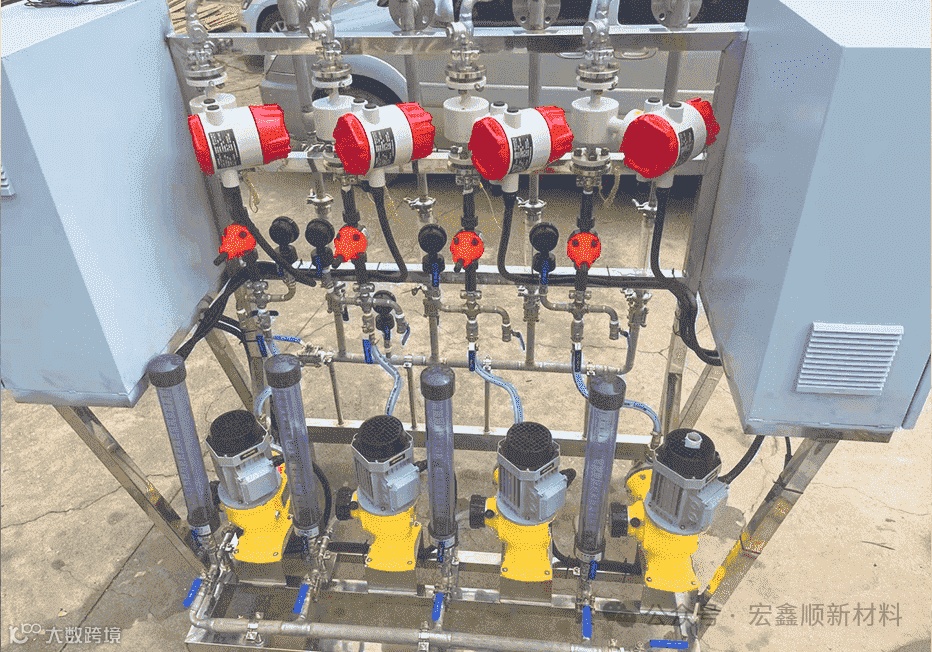 1、溶解系统,乳化设备为成套集成设备,通过小流量螺杆泵精准计量添加,将乳化好的助滤剂乳液转移到溶解槽。根据溶解槽的液位高低变化,系统能够实现溶解全自动运行。