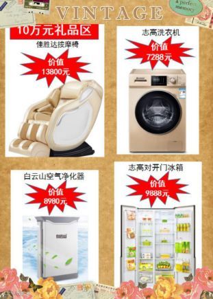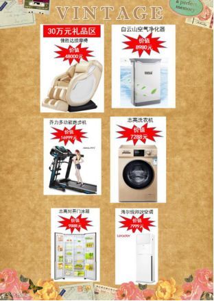 何老板利用万企悦赠品营销工具,分别针对散客和大客户推出家具行业史上最劲爆促销活动:散客单次或累计消费达1000元、3000元、5000元分别赠送不同价值的礼品;大客户单次或累计消费达1万元、10万元、30万元分别赠送不同价值的礼品。