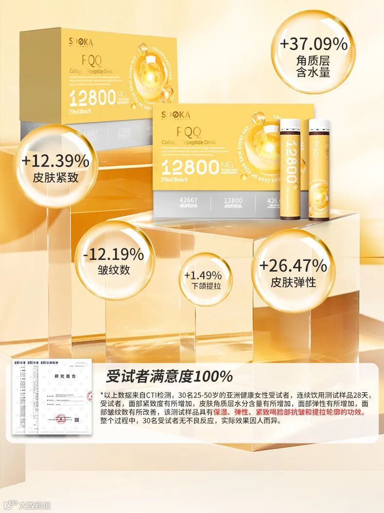 SDOKA 的效果不是 “空口说”,而是经第三方权威机构 CTI 实测验证(30 名 25-50 岁亚洲女性连续饮用 28 天)。