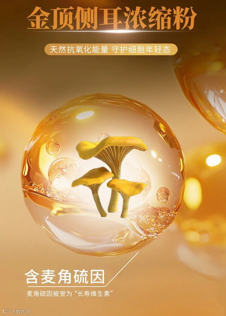 金顶侧耳浓缩粉:含 “长寿维生素” 麦角硫因,既能抗氧抗老,又能抗炎,减少痘痘、泛红导致的色素沉积;