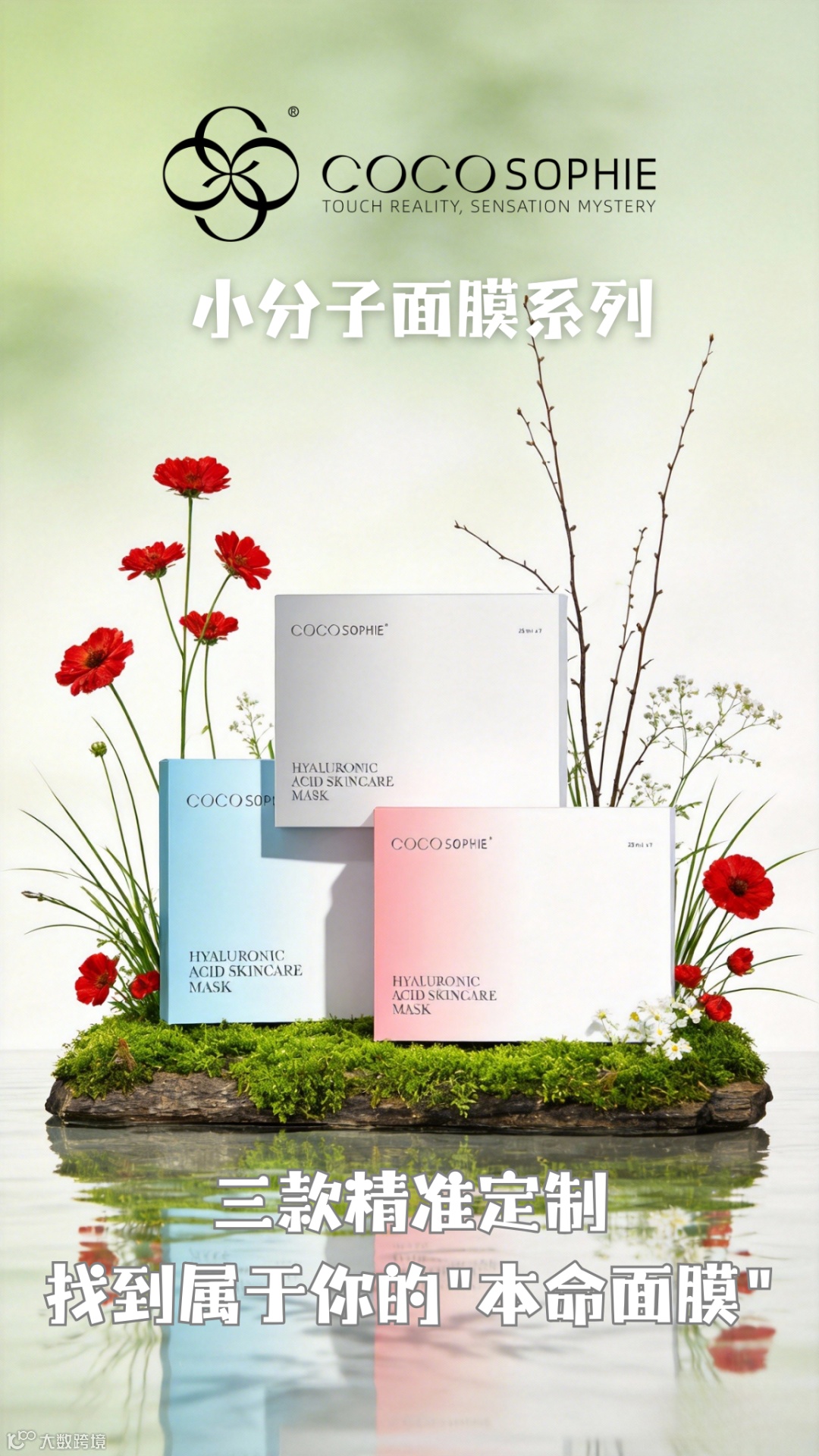 普通玻尿酸分子量大,只能停留在表皮,这就是为什么你敷完面膜很快又觉得干。COCOSOPHIE采用小分子玻尿酸,层层渗透直达肌底,不是表面补水而是深层储水+锁水,24小时长效维持肌肤水润状态,告别"假性补水"。