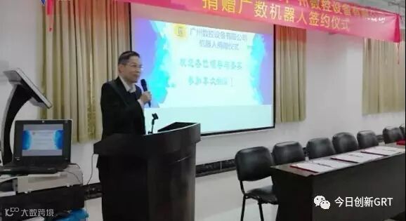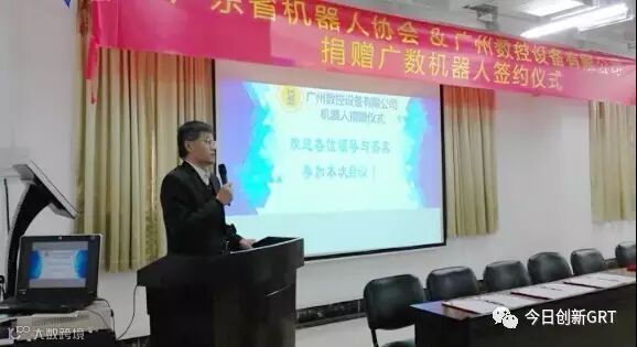 捐赠仪式上,广东省机器人协会副会长单位——广州数控设备有限公司捐赠给协会20台机器人,这些机器人将被提供给高校、科研院所和工业企业进行机器人项目的研发和应用试验。