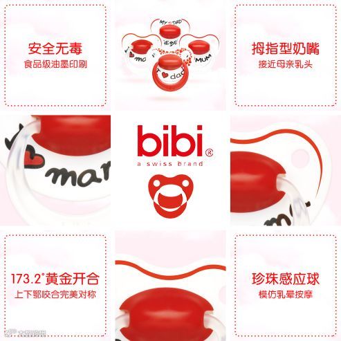 bibi,百年瑞士(Lamprecht)拉姆雷希特集团在1938年创建的品牌,一直坚守“只给宝宝最好的”理念,与科学家、儿科医生、牙医、妈妈共同合作,按照最新医学、人体工程学和科学知识,不断创造出高品质、独特有益健康的婴幼儿产品,畅销全球30多个国家和地区。