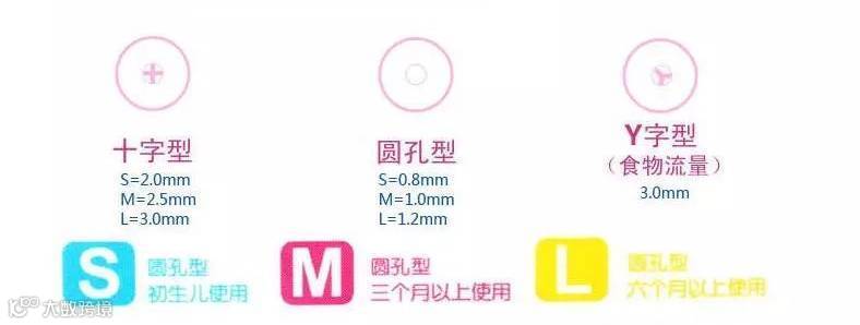 怎么选大小合适的奶嘴,你以为看看SML就可以了吗?不是的,麻麻别偷懒哟,记得多看一眼奶嘴孔:十字孔、圆孔等,或者按照母乳流量设计的一个孔、两个孔、三个孔等,因此要根据孩子的月龄以及实际情况来选购奶嘴。