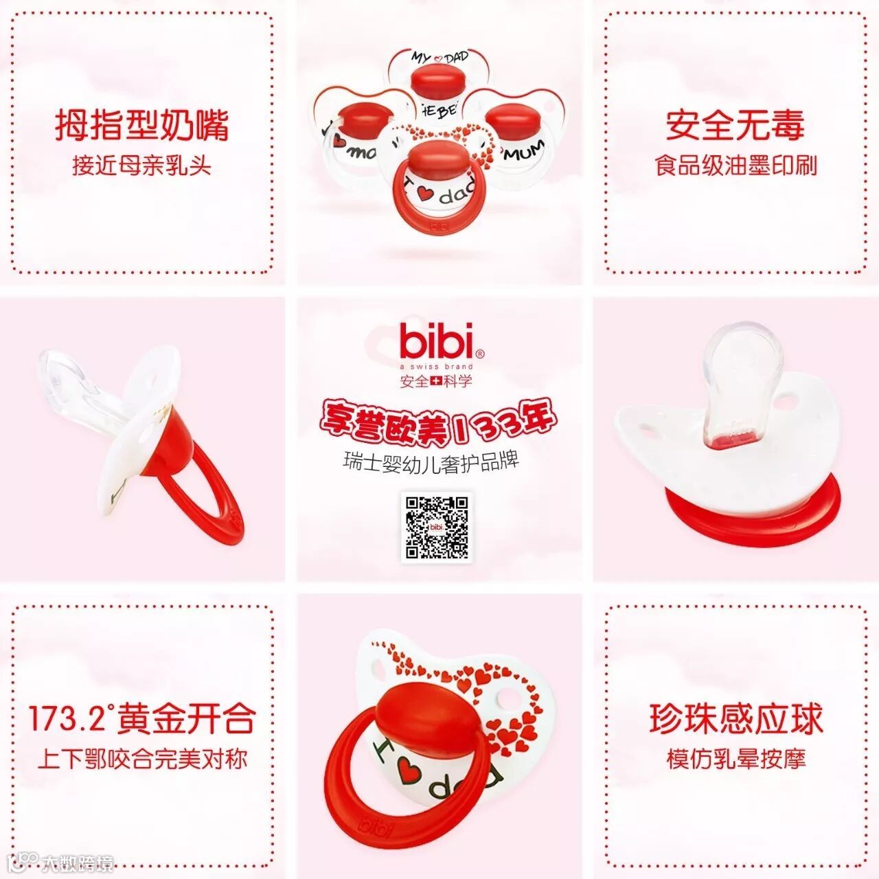 bibi,百年瑞士(Lamprecht)拉姆雷希特集团在1938年创建的品牌,一直坚守“只给宝宝最好的”理念,与科学家、儿科医生、牙医、妈妈共同合作,按照最新医学、人体工程学和科学知识,不断创造出高品质、独特有益健康的婴幼儿产品,畅销全球30多个国家和地区。