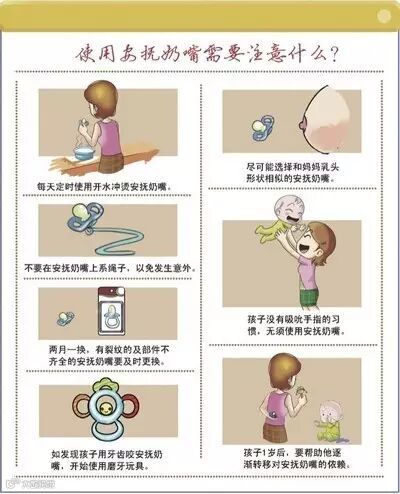 正确使用安抚奶嘴,尽量在孩子1岁以后不再使用,家长可以为他选择其他安慰物。