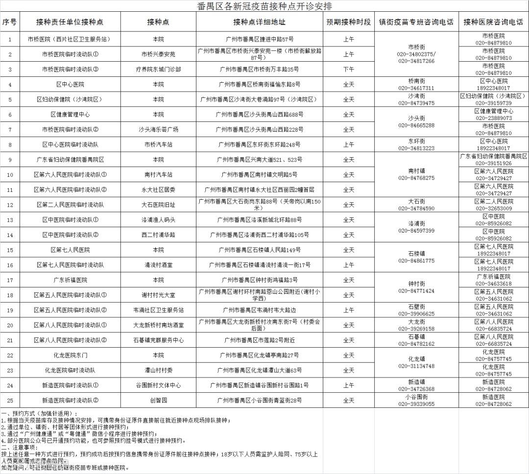 番禺区接种点在哪儿?