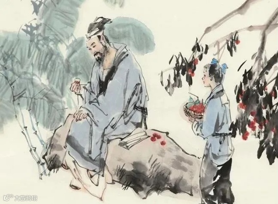 韩信饿着肚子城下钓鱼,河下漂母看他可怜,请他吃饭。