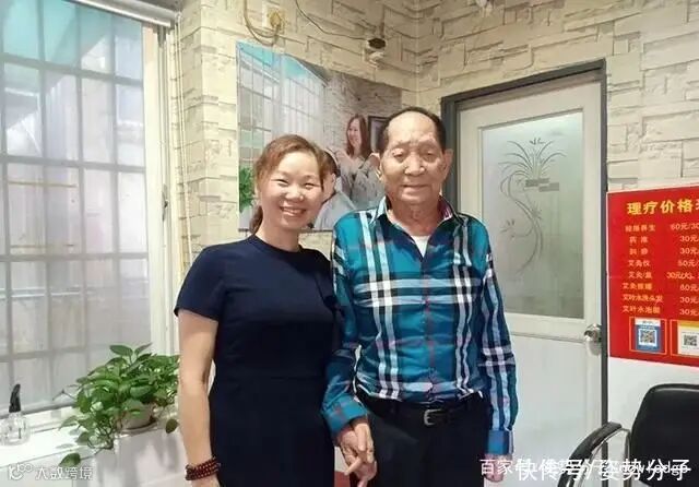 (图片说明:袁老亲切地和理发师牵手合影)
