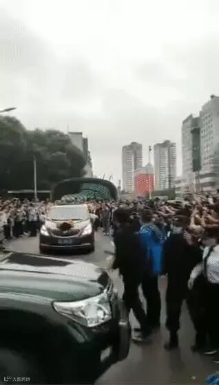 (图片说明:无数民众为袁老灵车送行,高喊“袁爷爷一路走好”)