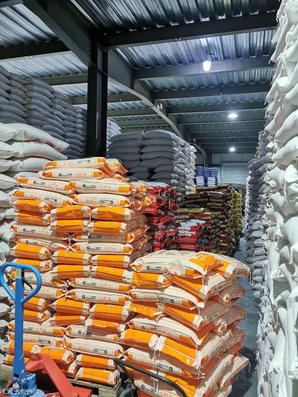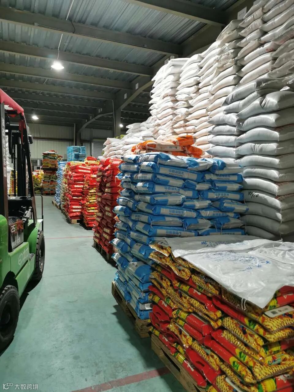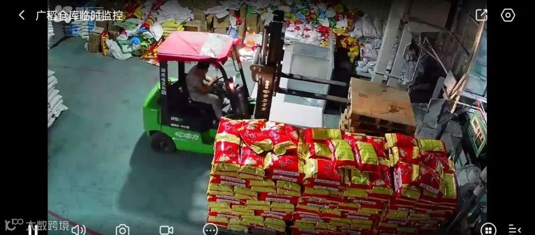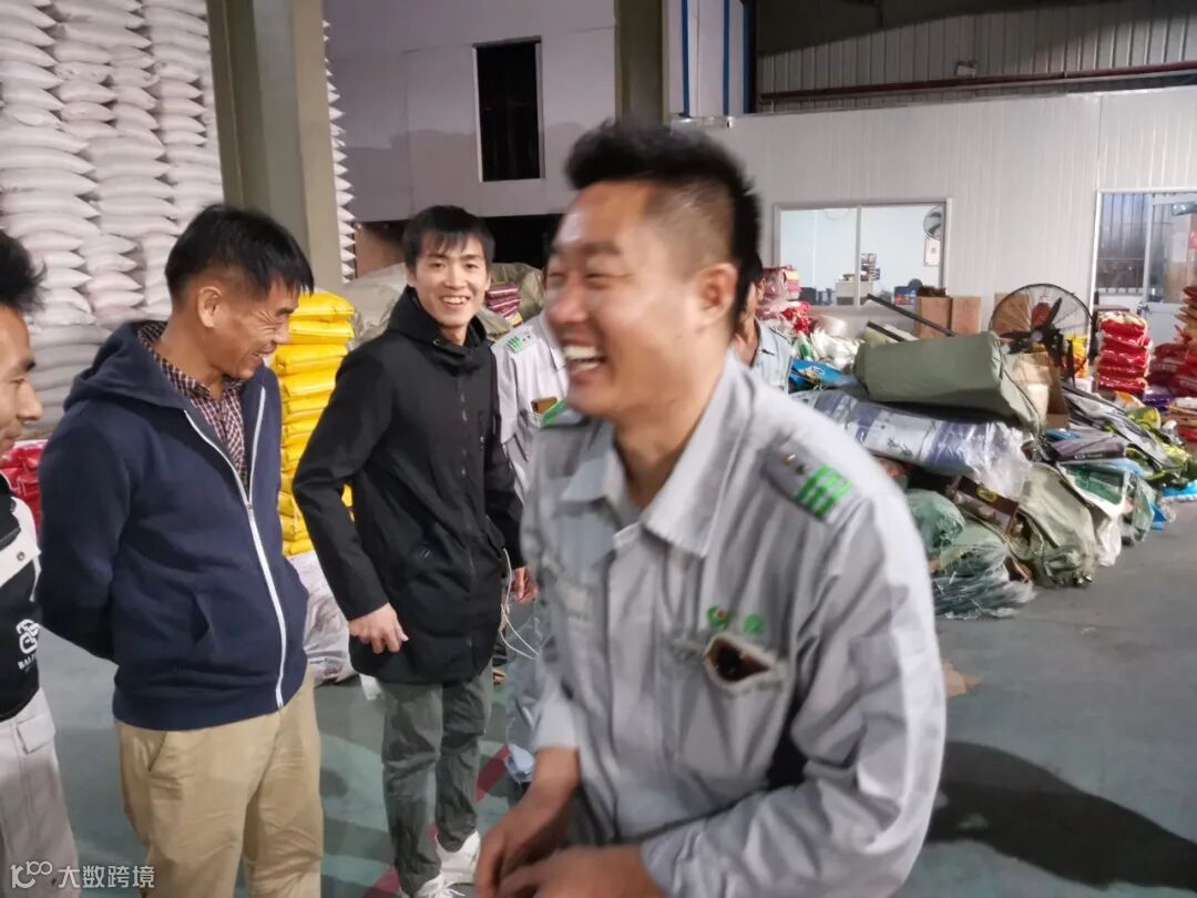 凌晨灯火通明的仓库,第二天要出的货压满通道。