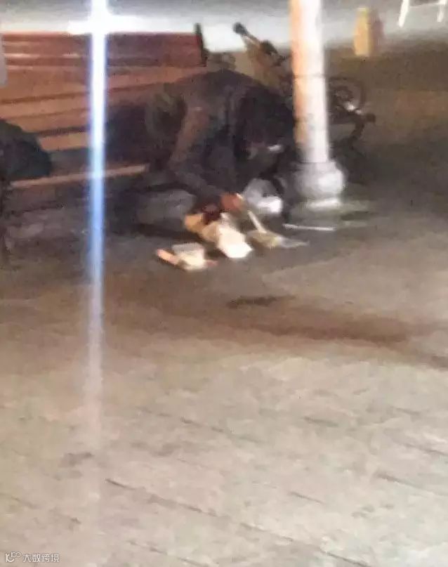 两人吃完后,女孩又买了两份米饭,和之前未动过的饭菜一起打包。出门后,女孩便把饭盒递给了路边的流浪汉。