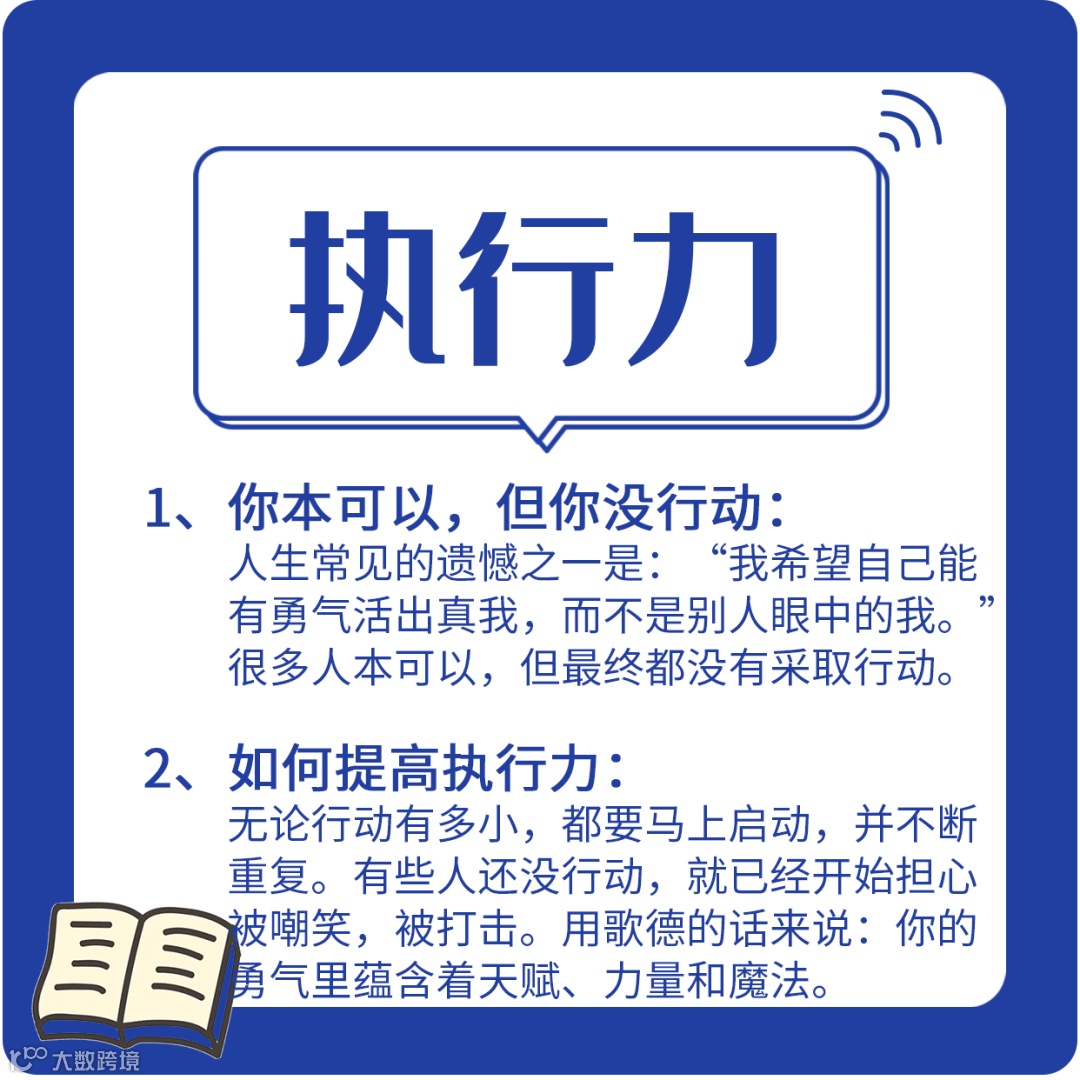 执行力:对个人而言执行力就是办事能力;对团队而言执行力就是战斗力;对企业而言执行力就是经营能力。