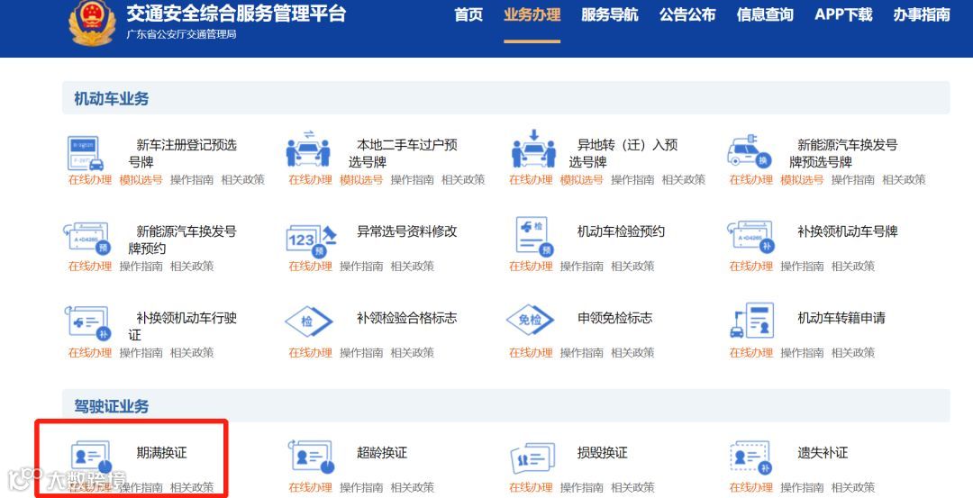 网页版选择驾驶证业务下的“期满换证”:(互联网交通安全综合服务管理平台gd.122.gov.cn)