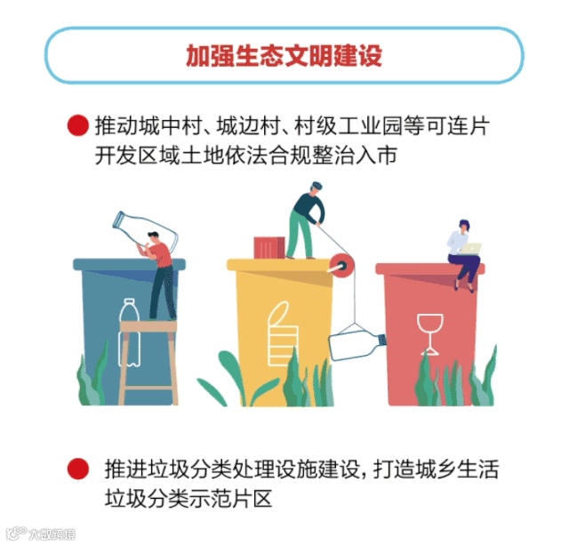 在人居环境整治、生态宜居美丽乡村建设方面,报告指出,今年要开展“十百千万”示范创建工程,在“四沿”区域建设美丽乡村风貌带,在珠三角地区开展“五美”专项行动,完成全部行政村环境综合整治,抓好农房管控、风貌提升,推进削坡建房和破旧泥砖房整治。