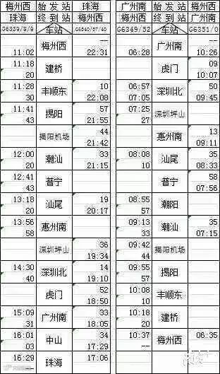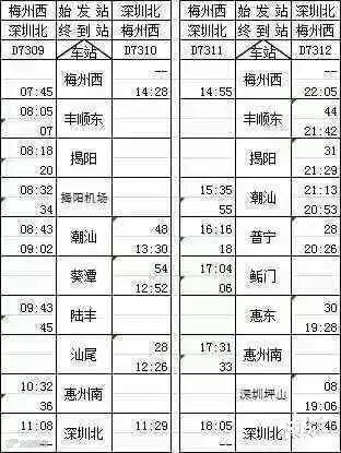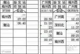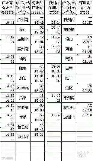 其中梅州往返广州12趟,往返深圳10趟