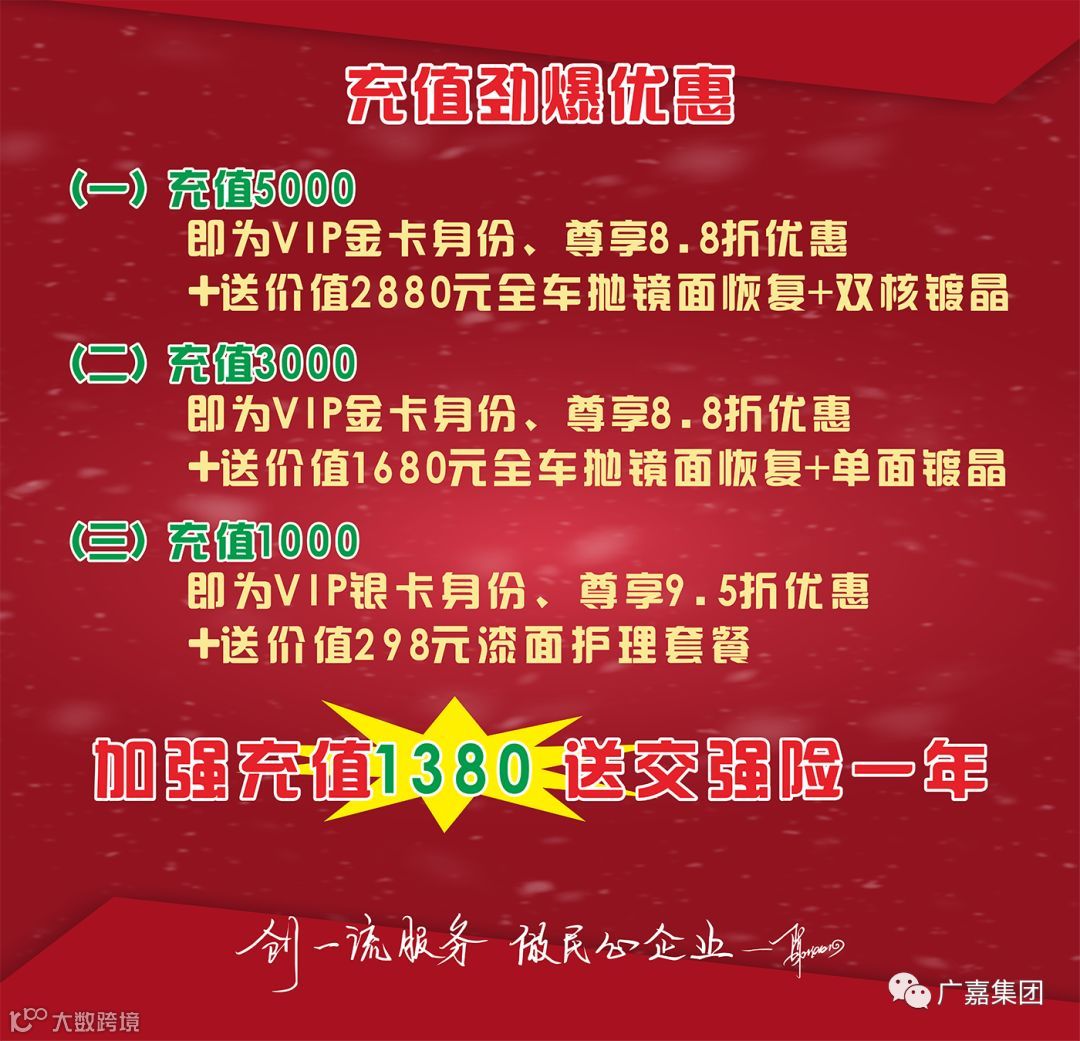 以下为广嘉车务(雅居乐名迪店)客户专享优惠!我们送折扣,送镀金,送保险。只要您来,总有一款适合您!