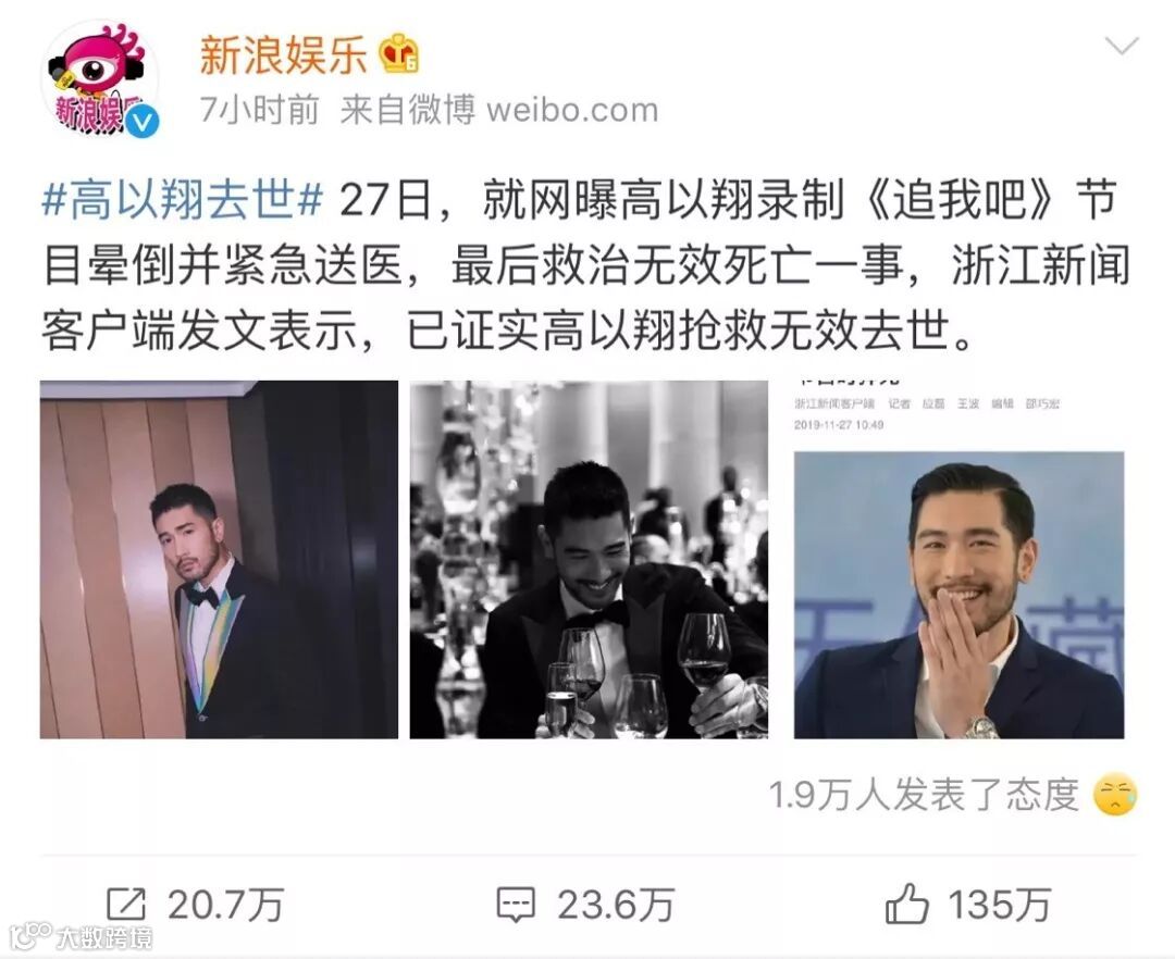 起初以为只是一个小意外,没想到刚过1个小时,官方就报道了逝世的噩耗。