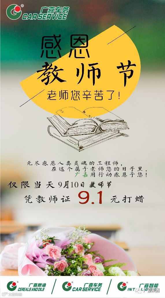 三尺讲台,是您无私奉献的地方,虽然那并不是一个华丽的舞台,也没有聚光灯下的辉煌,但您站在那里就是我们心目中的明星,是我们崇拜偶像,教师节到来,广嘉集团总裁办携全体职员,祝天下老师,节日快乐!工作顺利!阖家幸福!