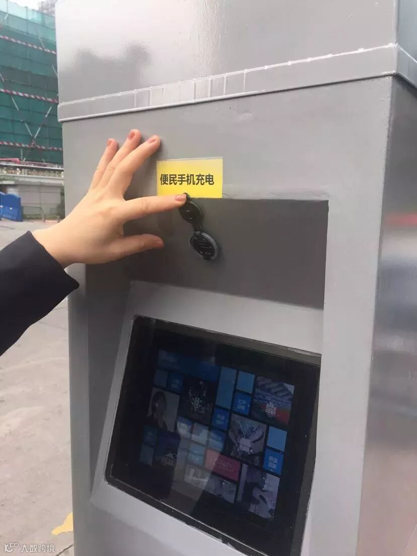 在智慧路灯基座的触摸屏上方有一个USB接口,可以直接用数据线充电。插上即可用,目前暂时免费。