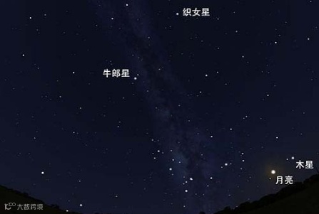 随后,在其偏南方向亮度为1星等的牛郎星升起。