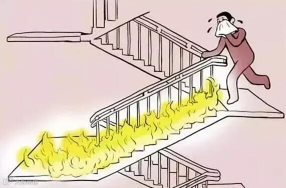 先根据现场实际情况判断火势,再迅速找到消防通道,往远离火源方向逃生(电梯此时是不可以用的),如果已经有烟在蔓延,应当放低体位迅速疏散。