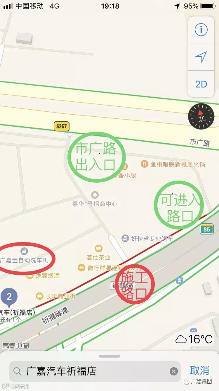 致广嘉车务祈福店客户: 因水果行主路口施工,进入门店时需从上一个入口进入,或绕行至市广路入口进入,出口只设市广路口,施工路口预计通车时间3月2号!如需咨询请致电:138 2215 9122邓邓,给您带来不便深表歉意。