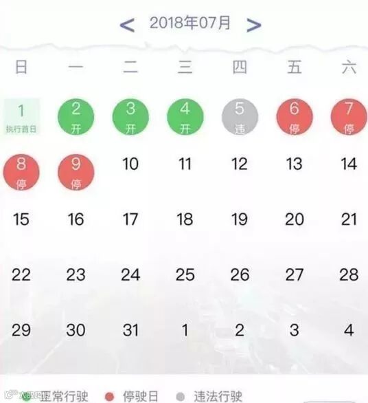 综上所述,第一个禁行日并非此前网上传言的8月1日,而 8月5日(本周日),第一张罚单最早也应该出现在8月5日。