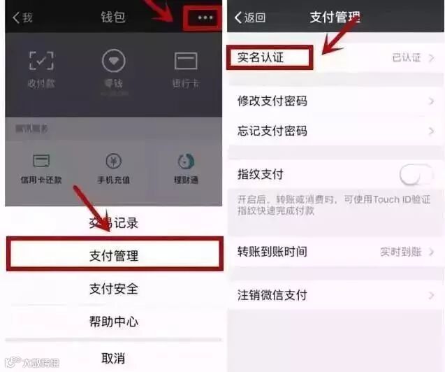打开【支付管理】【实名认证】