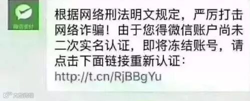 近日,多地接到群众举报,称其微信收到账号名为“支付安全认证”发送的消息,要求点击其中的网络链接,进行“微信二次实名认证”,否则冻结其微信账号。