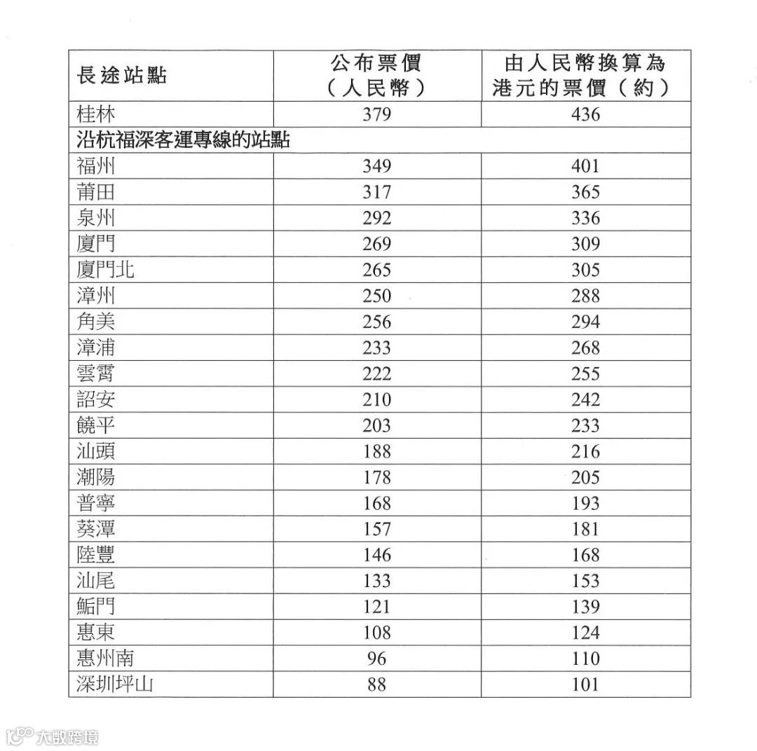 每个人肯定最关心的是价格问题吧!大家需要注意的是,高铁都是以人民币定价,以港币标价,因为汇率的问题也会有所浮动。