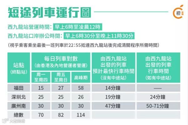 短途站由4个增至6个包括:福田、深圳北、光明城、虎门、庆盛、广州南。