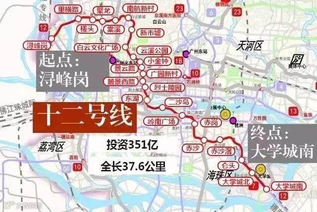 连接越秀-番禺区,经过白云区、越秀区、海珠区、番禺区,地铁十二号线开通后番禺街坊出去天河越秀玩,又更方便了