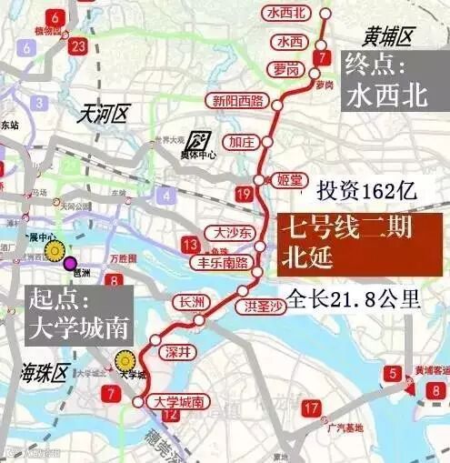 连通黄埔海珠和番禺,将会设置车站11座,换乘站7座,也会有效促进广佛同城一体化建设。