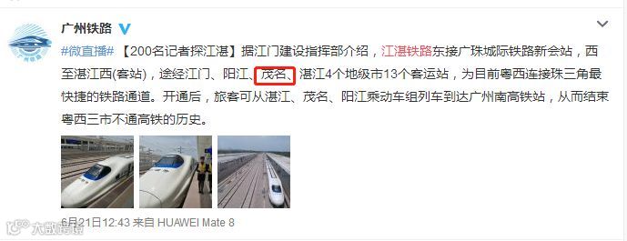 据湛江日报官方微信报道,江湛铁路票价还没最终敲定。省交通部门批复每公里6毛钱,湛江方面正在全力沟通争取降到每公里4毛钱。