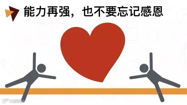 ▶工作能力不是天生就有的,而是在工作中向领导、同事们学习得来的。单位里没有人有义务教你什么,也没有人有义务一定要帮你什么。所以,心怀感恩,是对他人最好的尊重。能力再强也别忘感恩,你的路才能越走越顺。