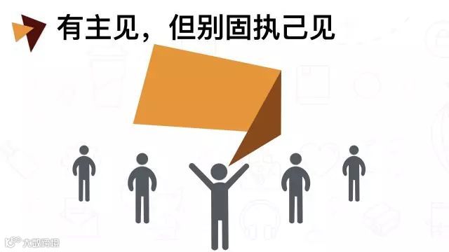 ▶一个人的心灵开放程度决定了一个人可以成长的高度。如果你才掌握了一点知识就觉得手持真理不再吐故纳新的话,就无法前进了。工作中谁也不是全知全能的,你需要做的是拿出主见,为工作贡献自己的一份智慧,而不是眼里只有自己,固执己见。