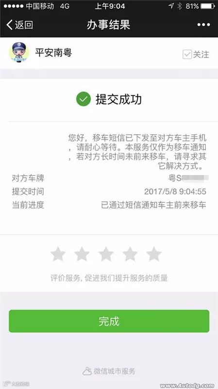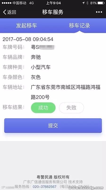 没问题!因为此服务由广东省公安厅提供,只要该车正常登记了信息就能联系到车主。