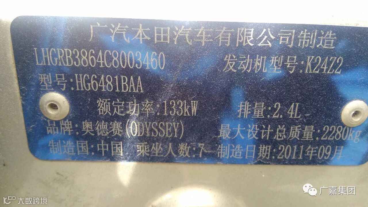 【品牌型号】奥德赛 2.4L,粤A户