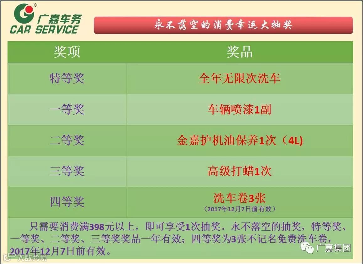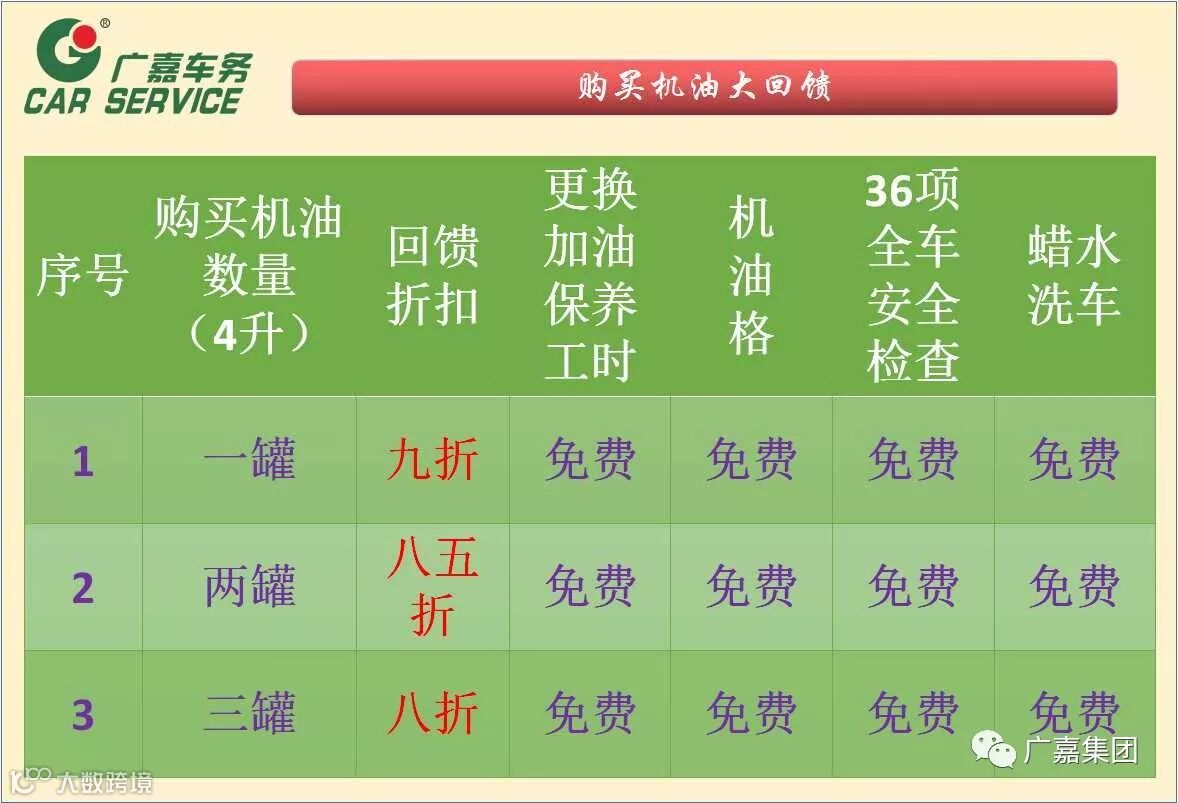 以上二项活动广嘉车务所有门店同步进行,可先购买,使用有效期一年。