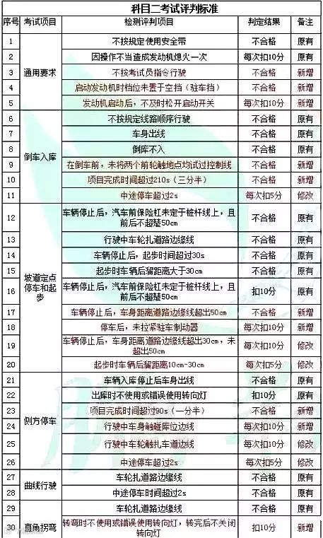 以下为科目三评判标准: