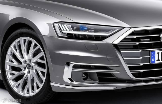 新一代奥迪A8高配车型的 高清矩阵LED大灯 也配有激光照明,但是只有车速达到69KM/H时才能开启。