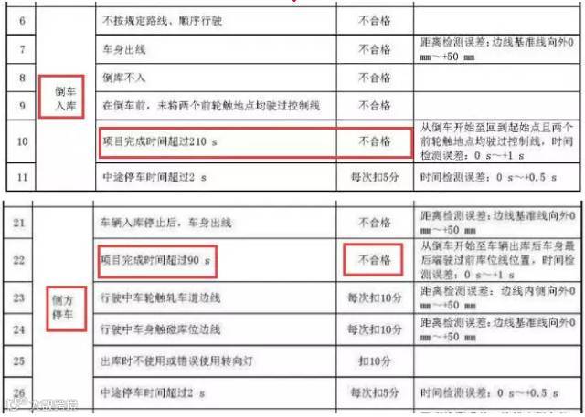 “倒车入库”完成时间不得超过210s(3分30秒)