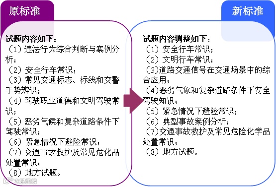 同时增加了原为科目一的安全文明驾驶常识内容