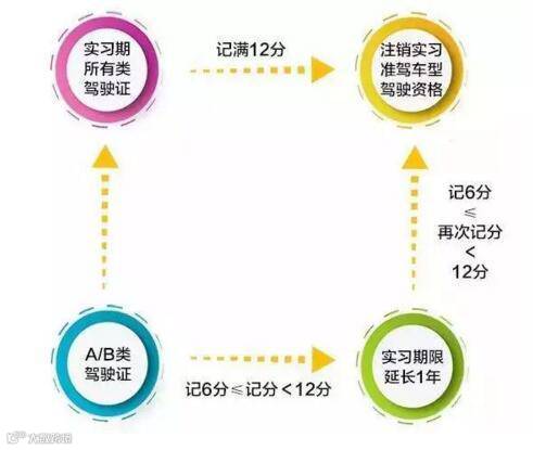 持有A1、A2、A3、B1、B2驾驶证的驾驶人在一年实习期内记6分以上但未达到12分的,实习期限延长一年。在延长的实习期内再次记6分以上但未达到12分的,注销其实习的准驾车型驾驶资格。