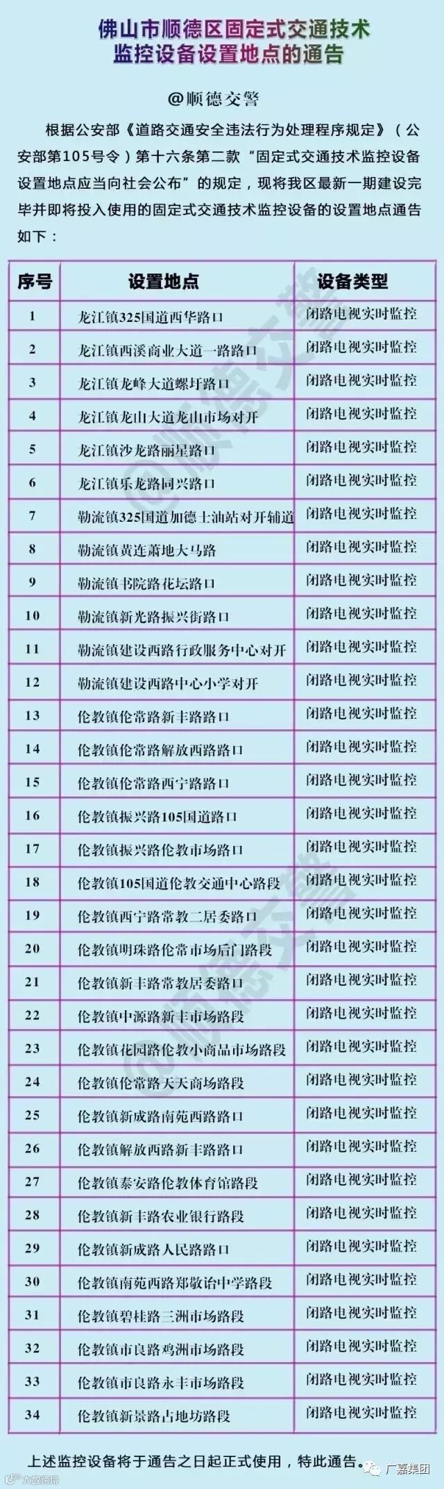顺德将启用34套“电子警察”。