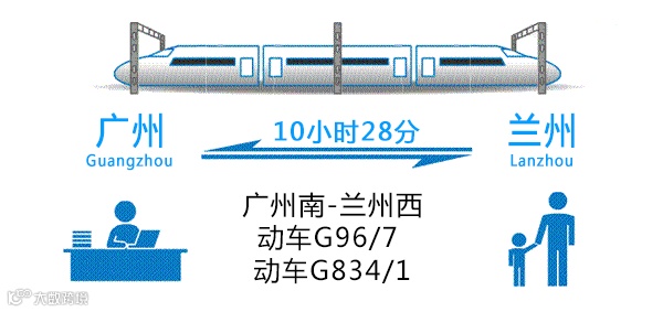今年7月起,广铁集团,将首次开行广州南到兰州西的动车,广州南站8:55始发,当天19:23分到达兰州西,全程只需10小时28分!大西北近在眼前~