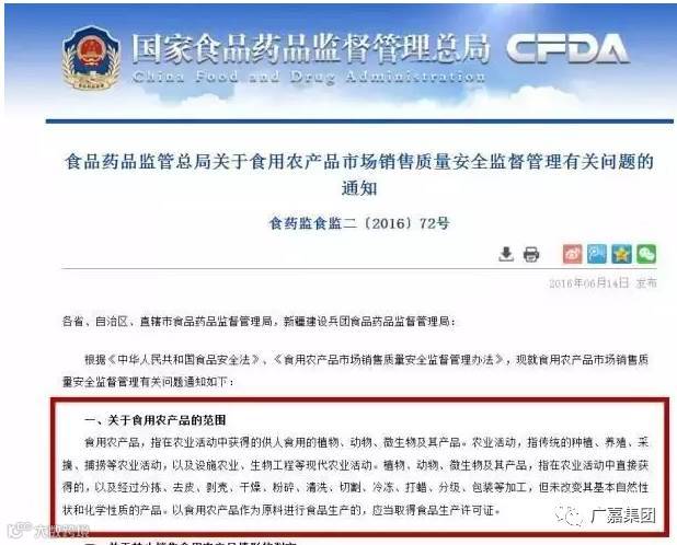 【食品药品监管总局关于食用农产品市场销售质量安全监督管理有关问题的通知】