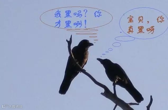 两只乌鸦在树上对骂起来,它们越骂越凶,越吵越激动,最后一只乌鸦随手捡起一样东西向另一只乌鸦打去。