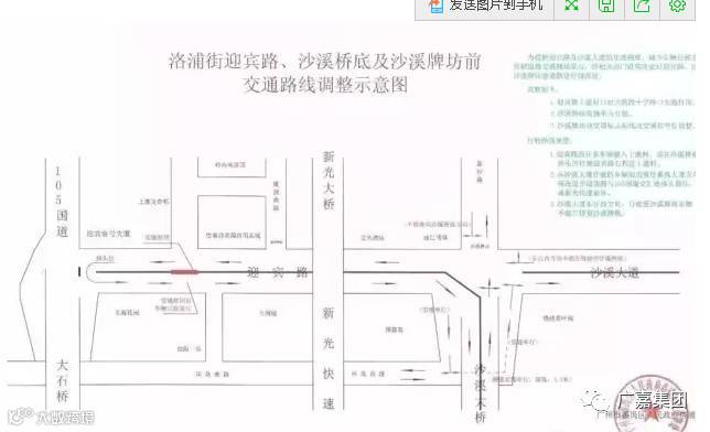 在沙溪大道行驶的车辆如需前往番禺大道方向,需改道至迎宾路与105国道交汇处掉头前往,或新光快速前往。